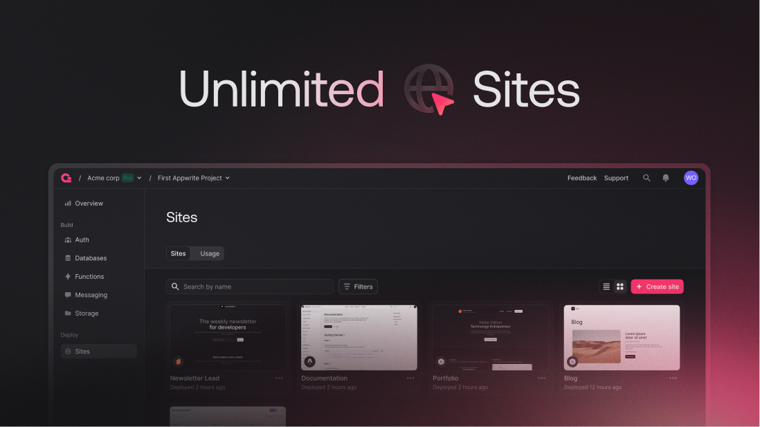 Appwrite Sites now fully supports Next.js 16, including Server-Side Rendering (SSR) and the latest framework improvements such as Cache Components, Turbopack, and refined caching APIs.